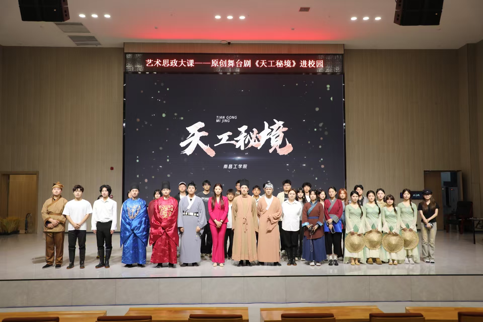 为丰富校园文化生活,深化美育教育与传统文化浸润,4月7日,南昌工学院原创精品舞台剧《天工秘境》专场演出在我校图书馆报告厅精彩上演。本次演出作为专题思政课,以“禾下乘凉梦”与“天工开万物”为核心命题,通过舞台艺术的生动演绎,串联袁隆平院士的水稻科研征程与宋应星《天工开物》的实学智慧,为现场300余名团员青年呈现了一场贯通古今、融汇科学精神与传统文化的沉浸式思想洗礼。演出以袁隆平院士田间劳作的场景开篇,舞台上金黄稻浪随风起伏,耄耋之年的袁老俯身察看稻穗,深情吟诵“禾下乘凉梦,一梦逐一生”。生动再现了袁隆平院士扎根大地、攻坚克难,“择一事、终一生”的坚定信仰,让在场团员青年深刻领悟“把论文写在祖国大地上”的时代内涵。 演出随后跨越时空,走进明代科学家宋应星的世界。舞台以宋应星著书历程为主线,将传统工匠精神与当代青年求索精神巧妙融合,从桐乡桑蚕基地的细致考察,到军器局的技艺钻研,再到与兄长携手雕版印刷的数年耕耘,跌宕的剧情、精美的舞台呈现、真挚的情感表达,深深感染了在场的每一位观众,深刻展现了中华优秀传统文化中“天人合一、勤勉务实”的实学精髓,引导青年学子传承匠人精神与创新思维。此次《天工秘境》思政课进校演出,是我校推进校园文化建设、拓展思政教育载体的重要举措。下一步,我校将持续引进优质文艺资源,开展形式多样的文化活动,以文化人、以美育人,引导广大青年学子坚定文化自信,传承匠心精神,在勤学笃行中成长为担当民族复兴大任的时代新人。 文图审/校团委