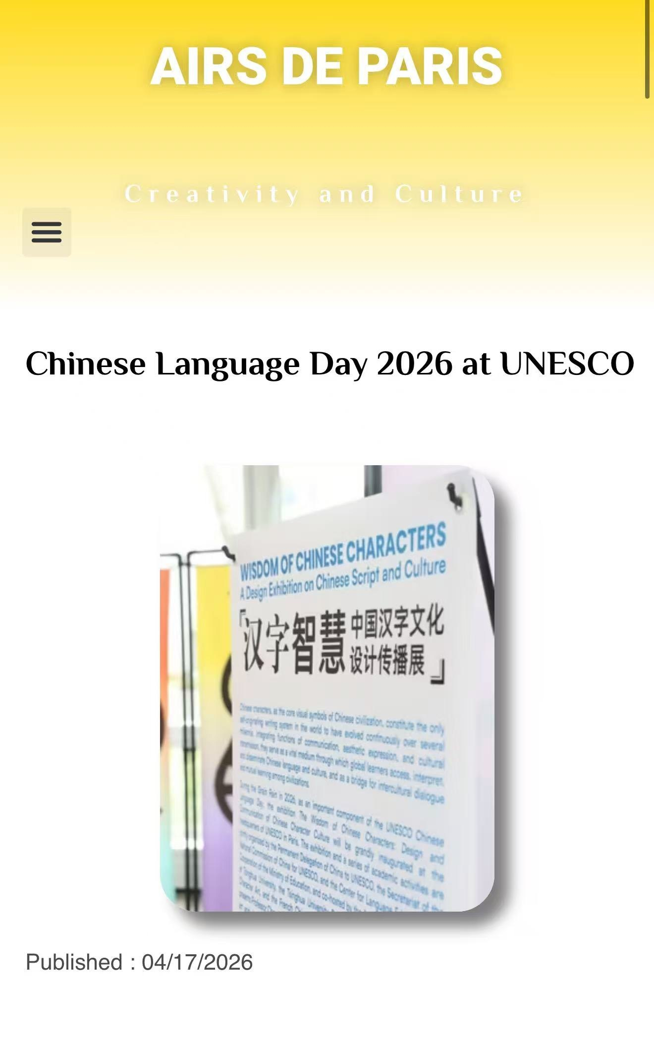 时值联合国正式将中文列为官方语言八十周年,亦逢第十七个联合国中文日。塞纳河畔,春光正好;巴黎城内,文脉流芳。2026年4月13日至17日,校长陶也青率队,携“字融匠心,艺见中国”工艺美术作品展亮相巴黎联合国教科文组织总部,为国际舞台注入浓郁的中国风韵。《巴黎灵感》予以报道: