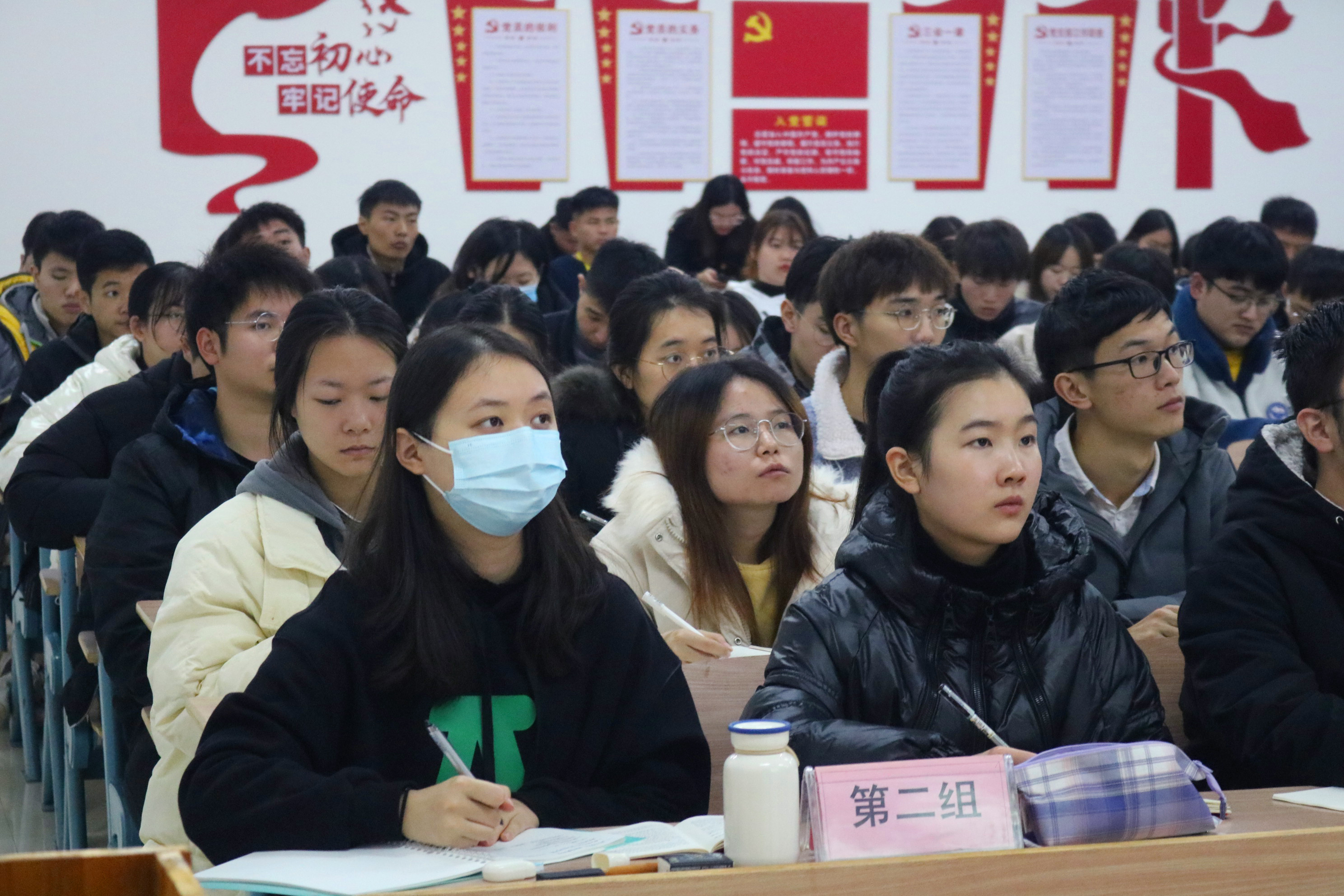 12月21日晚,为贯彻落实党的十九届六中全会精神,准确把握中国共产党百年奋斗重大成就和历史经验,深刻领会习近平新时代中国特色社会主义思想的丰富内涵,引导高校青年学子自觉把思想和行动统一到全会精神上来,校党委委员、校长助理郭宇在教学楼3507教室为2021年下半年发展对象讲了题为《传承红色基因,担当复兴使命》的专题党课。学校教职工、学生党员发展对象100余人参加了学习。