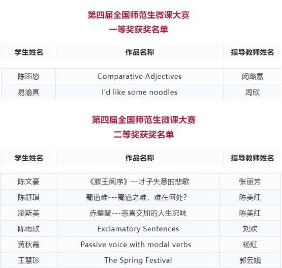 喜报:我校师生在第四届师范生微课大赛荣获佳绩