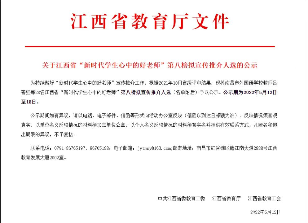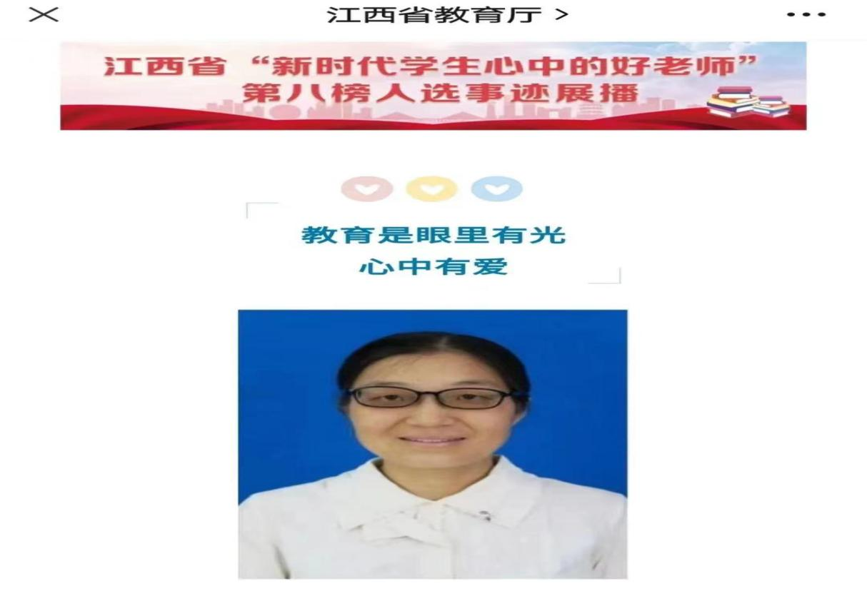 四、我校刘晓琳老师入选江西省“新时代学生心中的好老师”第八榜宣传推介人选