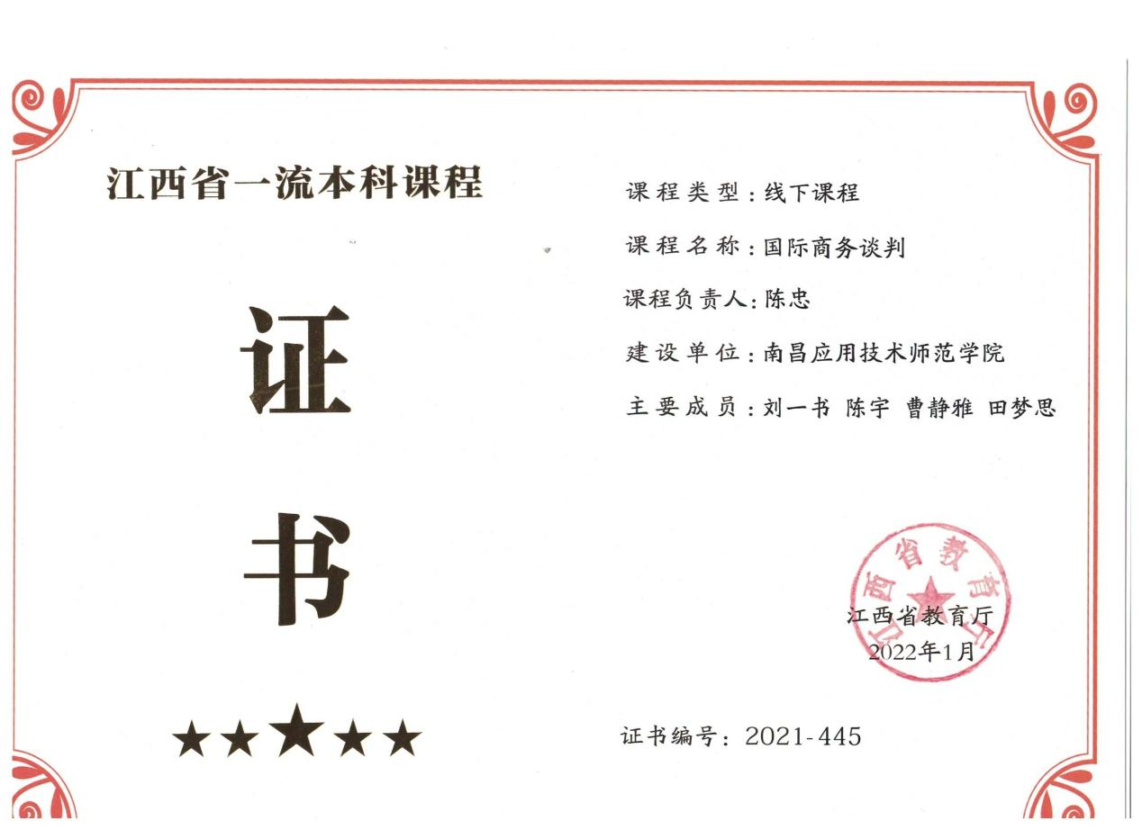 我校国际商务谈判课程获批江西省一流课程