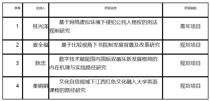 七、我校获2022年度江西省高校人文社会科学研究立项4项