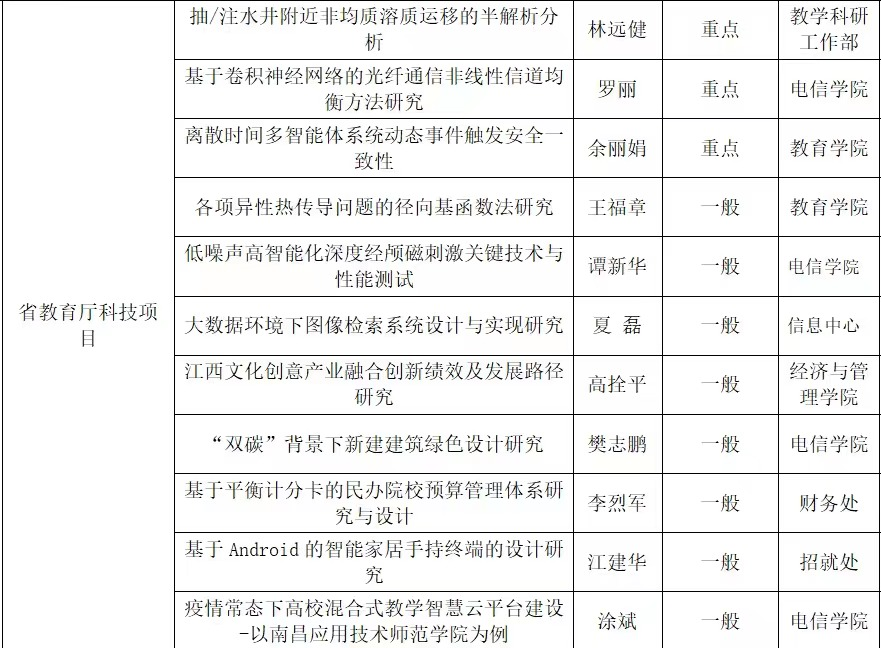 八、我校获批多个江西省教育厅科技项目