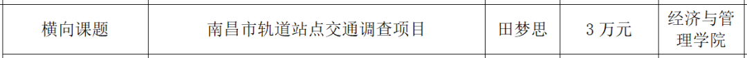 日前,我校经济与管理学院田梦思老师成功中标深圳市城市交通规划设计研究中心股份有限公司《南昌市轨道站点交通调查项目》项目,项目总经费3万元,该项目为我校首次承接社会调查类的横向科研项目。横向课题研究是扩大对外联系,服务地方经济社会发展,提高教学科研水平的重要途径。学校转设以来,立足破五唯,立三唯,鼓励老师发挥专业所长,主动对接服务区域经济社会发展需要,积极开展应用型研究。此次横向课题的新突破,是我校主动服务地方经济建设和社会发展的重要体现,也是校企合作共赢的有力实践。我校将以此为契机,解放思想,开拓创新,坚持对接市场需求,推动并深化校企合作,进一步增强社会服务能力。