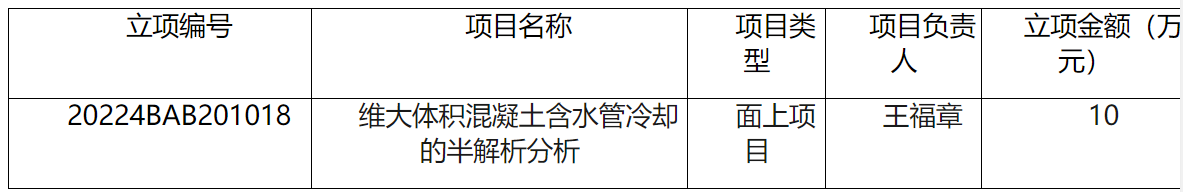 根据江西省科学技术厅公布的《江西省科学技术厅关于下达 2022 年省级科技专项资金(科技计划第三批、第四批)项目的通知》,我校教师王福章博士申报的“三维大体积混凝土含水管冷却的半解析分析”科研项目获得2022年江西自然科学基金-面上项目立项,资助经费10万元,是我校首次获得该项目立项,也为我校教师科研成果再添佳绩。一直以来,学校高度重视科研工作,不断优化科研激励机制,教师们潜心科研,形成了良好的科研氛围。此次科研成果获得立项,是学校坚持以学科建设为引领,持续深入开展科学研究的结果,显示了我校不断提升教师科研能力、学术水平的决心,不断推动高质量科研创新工作再创新高的能力。