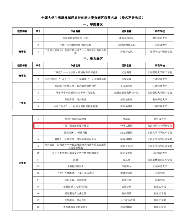4.我校在全国大学生粤港澳海洋旅游创新大赛中喜获华东赛区三等奖