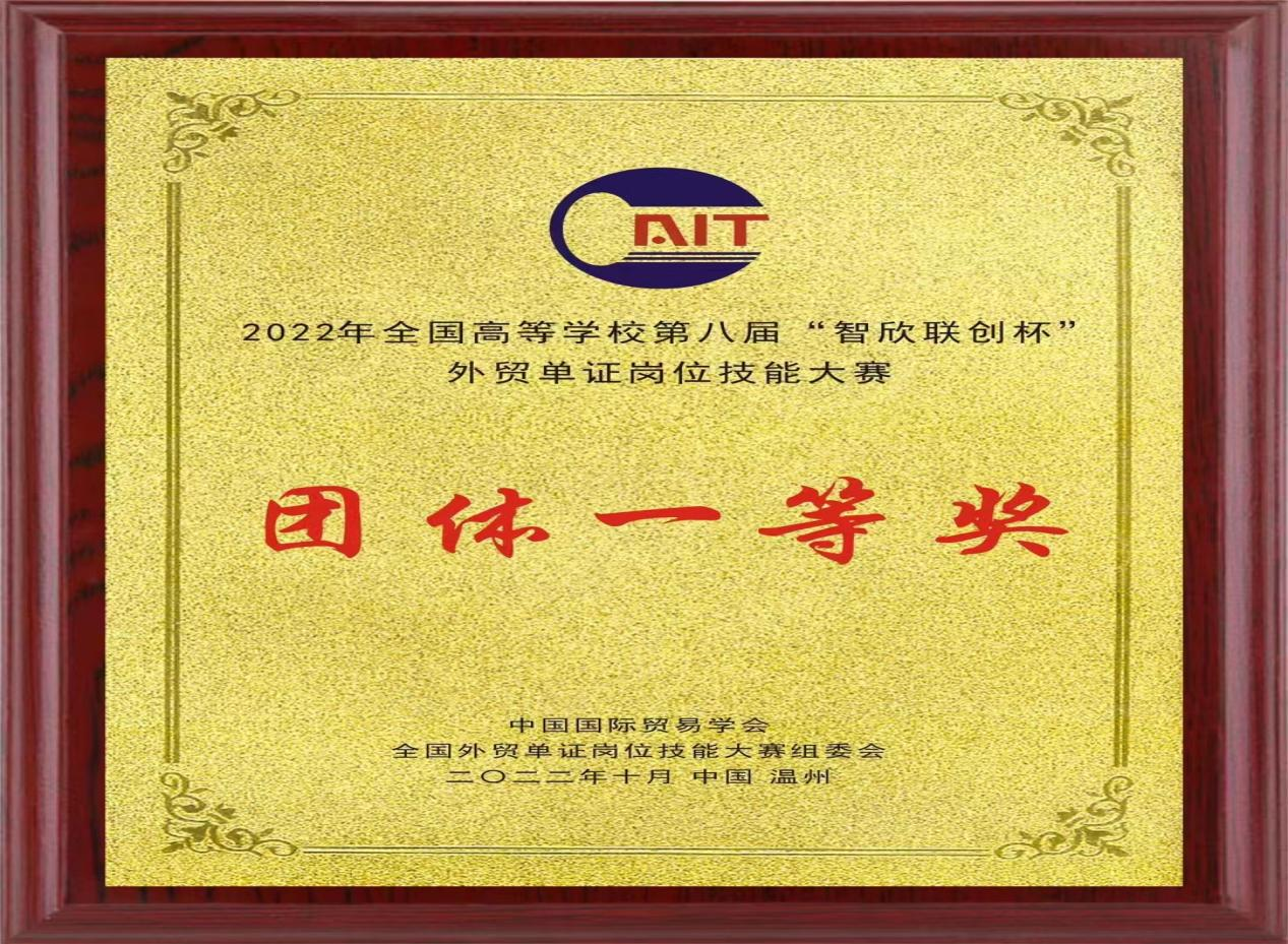5.我校获2022年全国高等学校第八届“智欣联创杯”外贸单证岗位技能大赛团体一等奖