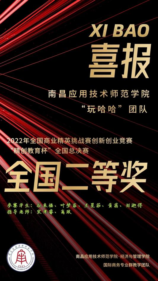 2022年10月23日,全国高校商业精英挑战赛“精创教育杯”创新创业竞赛全国总决赛在线落下帷幕。我校经济与管理学院参赛团队在此次比赛中脱颖而出,分别斩获全国二等奖、区域赛三等奖。经济与管理学院宋津睿和高政老师指导的“玩哈哈”队荣获全国二等奖,此奖项是我校转设以来首次于该比赛获得的全国奖项!此次比赛共有来自全国30个省、直辖市、自治区的300多所院校,近1500支团队,万余名师生代表参赛。我校经济与管理学院作为该比赛的首次参赛成员,校领导高度重视。在学校的认真组织和师生的积极参与下,历经近五个月的辛苦努力,最终在该比赛中斩获佳绩。