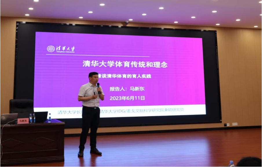2023年6月11日,由艺体学院主办的科研学术讲座活动在教学楼2312学术会议室如期举行。现任清华大学体育部党委书记、博士生导师马新东教授应邀为学院师生作了题为《清华大学体育传统和理念》的学术讲座。讲座由院长聂智斌主持,全体体育专职教师及体育专业学生代表参加了本次讲座。