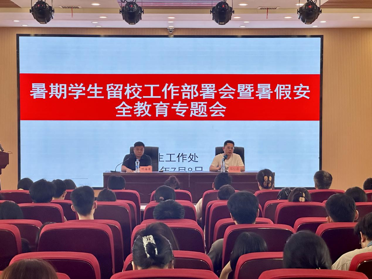为做好暑期留校学生的安全教育与管理工作,学工处于7月8日下午召开了暑期学生留校工作部署会暨暑假安全教育专题会,副校长郑行忠,各学院副书记、相关工作人员、暑期留校学生参加了会议,会议由学工处处长叶海涛主持。