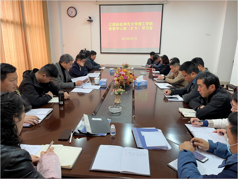 4月7日上午9:30分,理工学院党委中心组(扩大)学习会在行政楼220会议室召开,学习贯彻习近平总书记系列重要讲话精神。在院领导及全体中层干部参加,会议由党委书记熊小明主持。