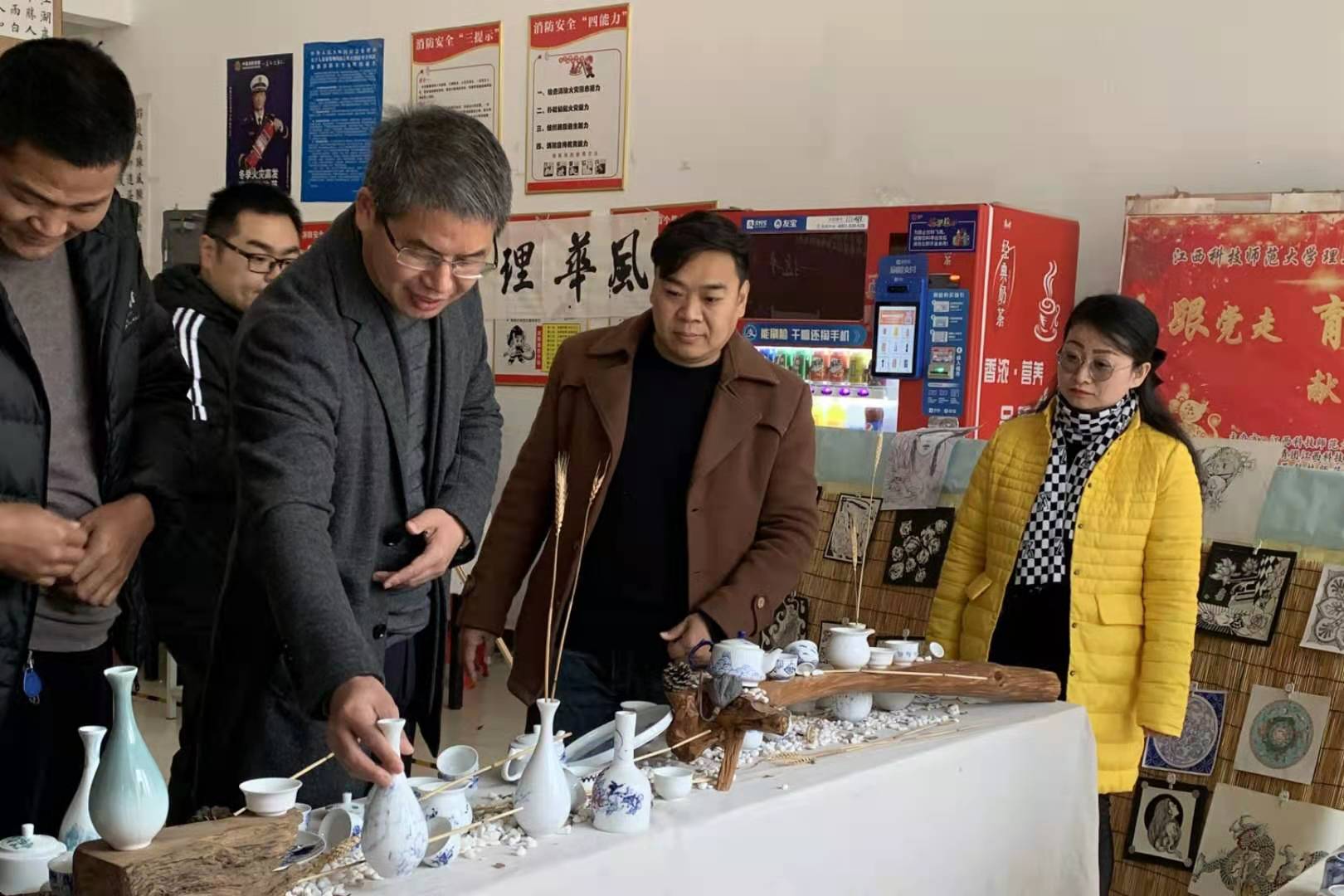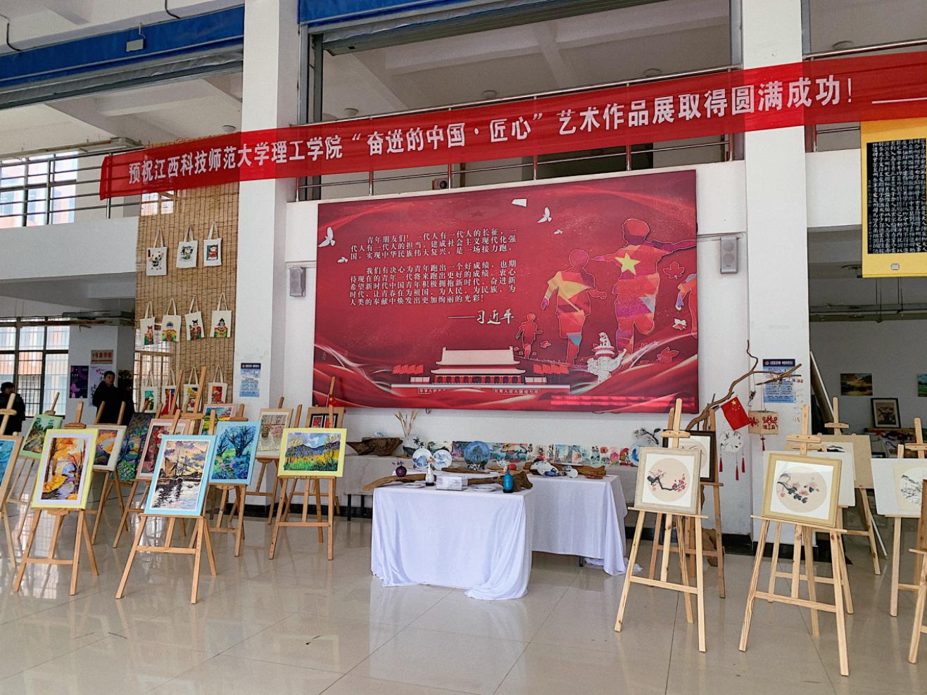 12月10日“奋进的中国·匠心”艺术作品展在理工教学楼大厅成功举办。学院院长周叶、党委书记熊小明、副院长罗焰、院办主任吴丽华、学工处处长周林旺以及各学科部老师均到场指导。