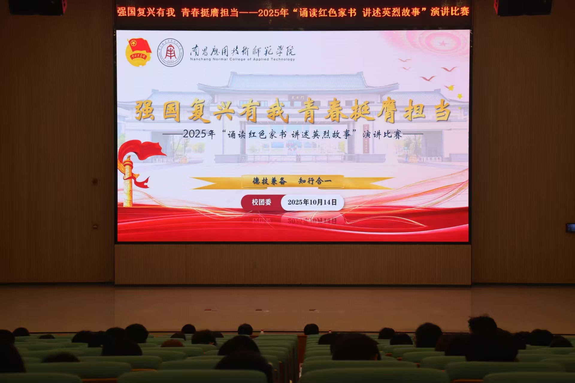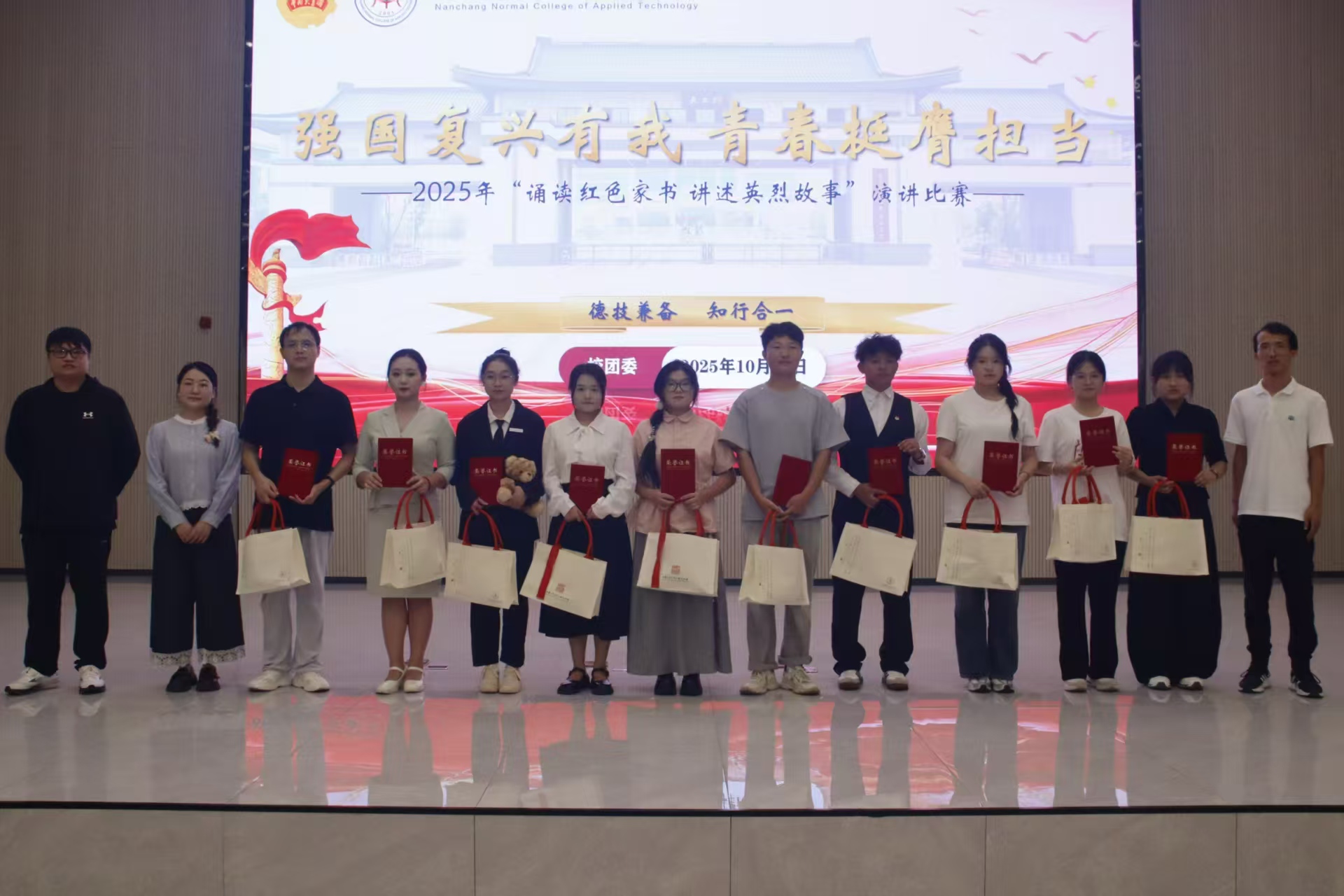 为深入传承红色基因、凝聚青春力量,引导广大青年学子在强国复兴征程中勇担使命、砥砺前行,2025年10月14日下午,学校于图书馆报告厅隆重举行“强国复兴有我,青春挺膺担当——2025年‘诵读红色家书,讲述英烈故事’”主题演讲比赛。