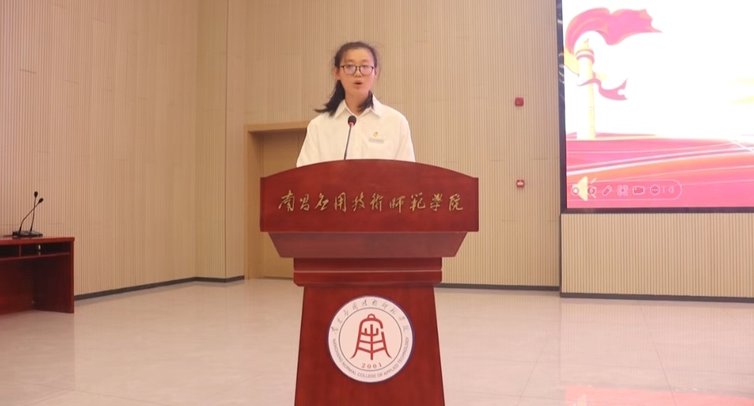 新任学生干部代表郑嘉琦发言,她结合自身感悟与工作规划分享思考,并做出承诺:以责任为基,当好师生间的“桥梁”;以“热情”为翼,打造有温度的“成长平台”;以榜样为尺,争做全面发展的“排头兵”。她表示将以更饱满的热情和更务实的作风投身学生工作。