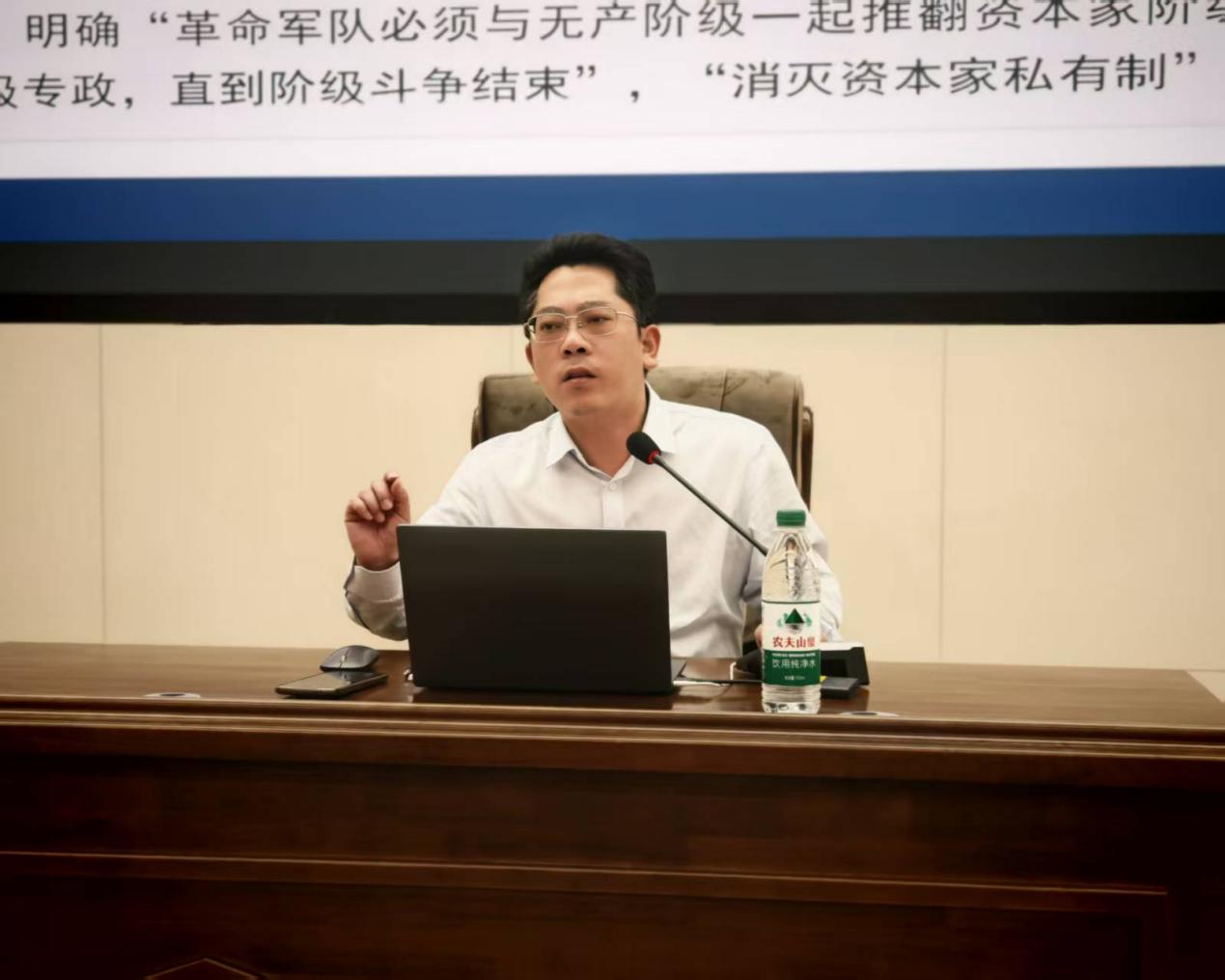 马克思主义学院院长助理杨志明围绕《习近平新时代中国特色社会主义思想》进行了专题辅导。帮助学员们构建系统的理论认知,筑牢信仰之基。