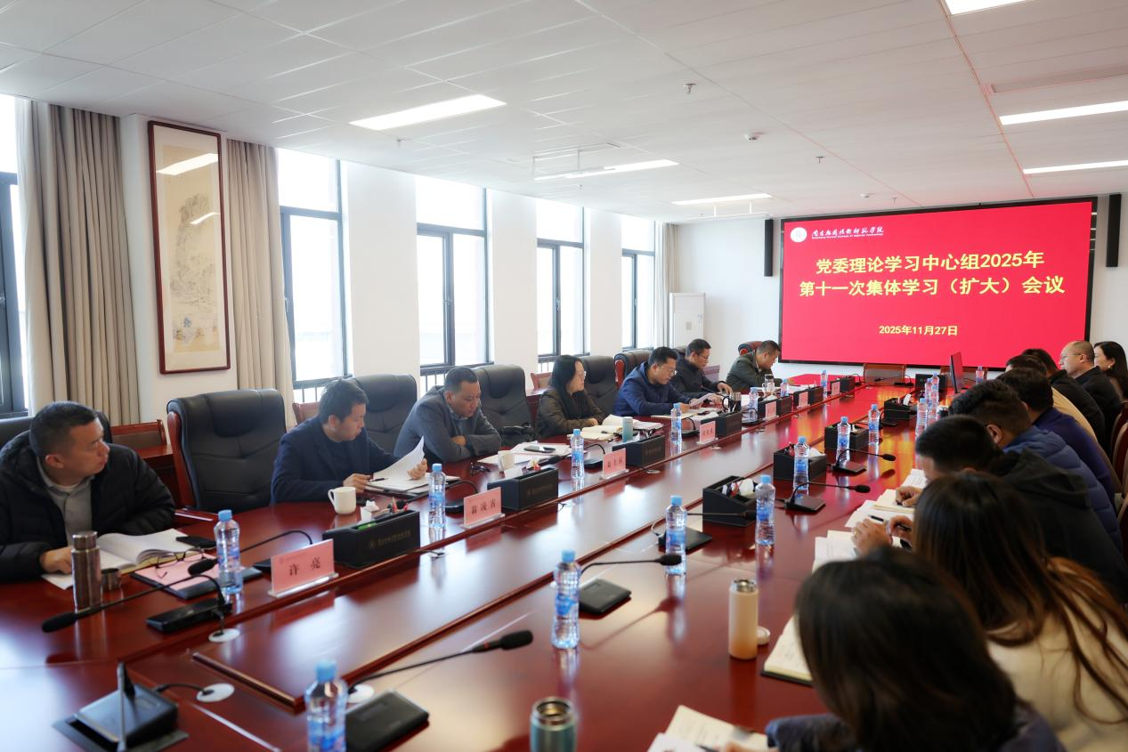11月27日,学校召开2025年第十一次党委理论学习中心组(扩大)学习会,专题学习贯彻党的二十届四中全会精神,并就科学谋划学校“十五五”发展规划进行深入研讨,校党委书记、督导专员胡晓娥主持会议,校党委班子成员、非党委委员校领导,党群部门负责人、各二级学院书记参会。