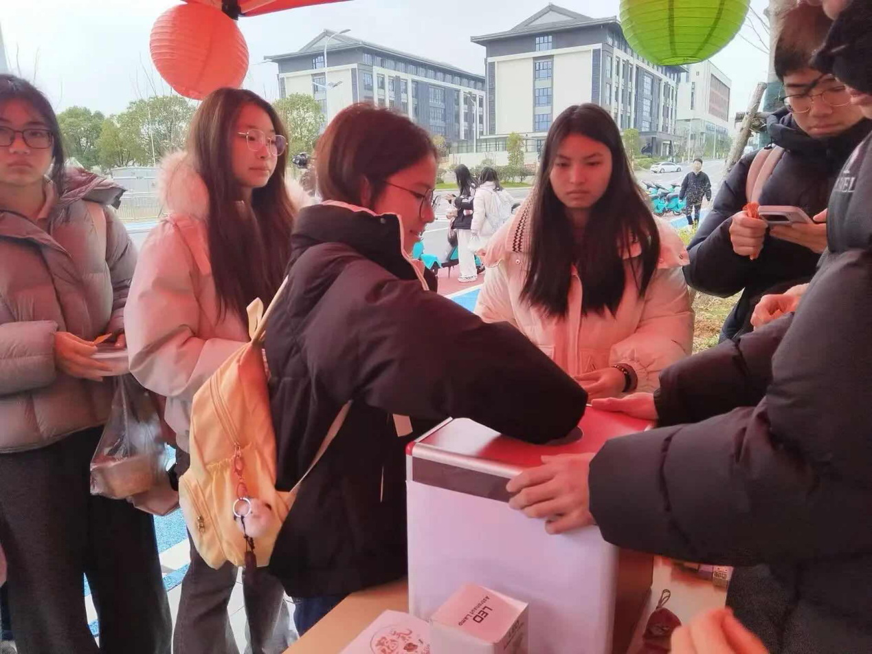 投壶雅韵承传统,欢声笑语庆团圆。作为传统民俗环节,投壶场地规范有序,志愿者讲解规则与渊源,师生踊跃参与、互动切磋,在欢声笑语中感受传统礼仪魅力,增进彼此情谊,让传统民俗焕发新生。团扇轻摇绘美好,笔墨传情寄新愿。画团扇环节中,工作人员准备好材料,志愿者现场指导,师生发挥创意,在团扇上勾勒花灯、书写祝福,打造独具特色的作品,在沉浸式体验中感受传统工艺之美。抽奖纳福迎好运,喜乐相伴启新篇。活动现场设置抽奖环节,准备了文具、福袋等礼品,师生有序参与,在收获惊喜的同时,感受节日喜悦,汲取新学期奋进动力。