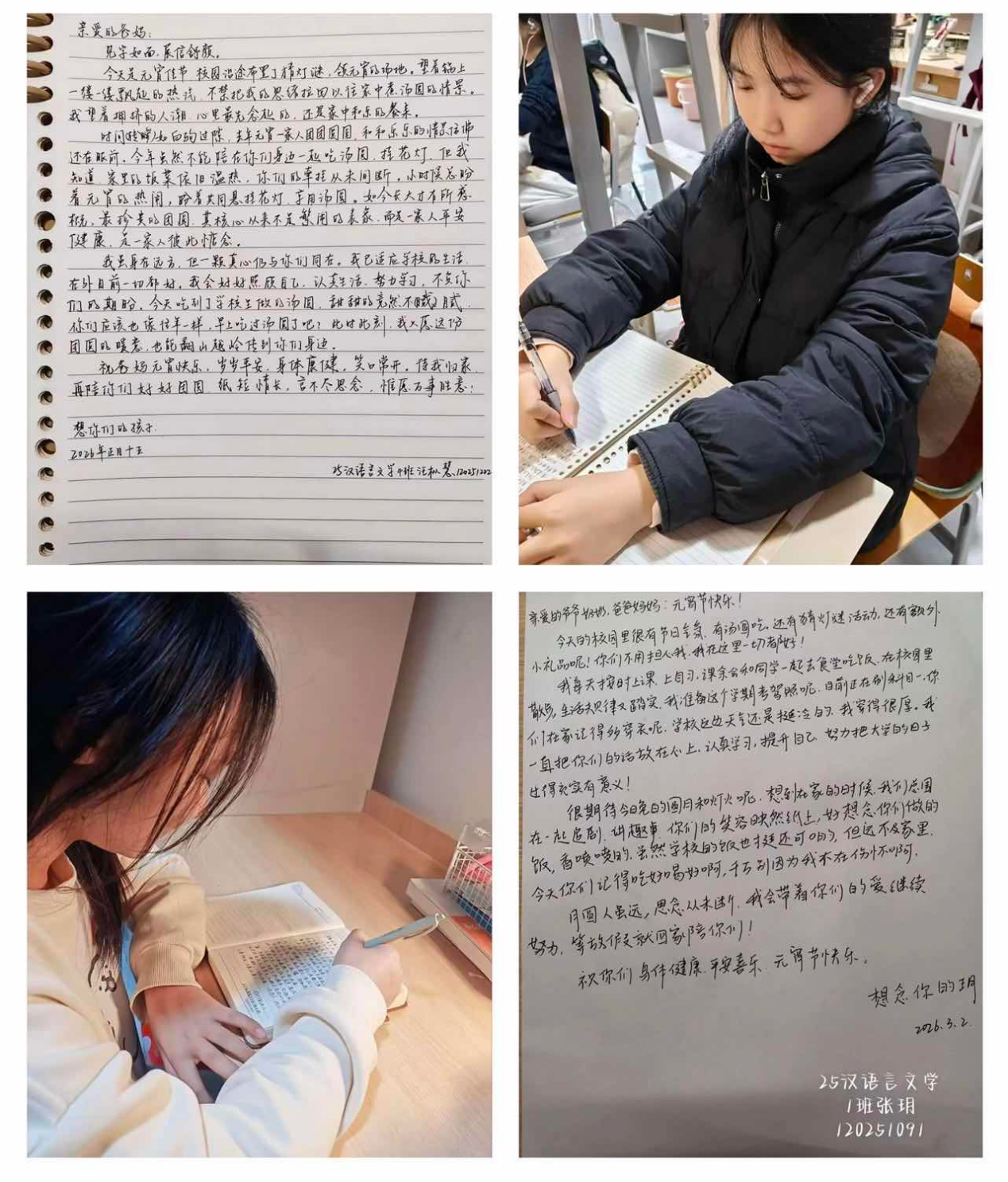 元宵节,同学们伏案执笔,将校园成长的点滴、对家人的感恩之情、元宵佳节的思念之意与新学期的美好期盼凝于笔尖,以一纸家书传递绵长亲情。此次活动将传统节日氛围与亲情教育深度融合,既传承了中华优秀书信文化,又涵养了学子的感恩之心与家国情怀,为元宵活动增添了浓厚的温情底色。