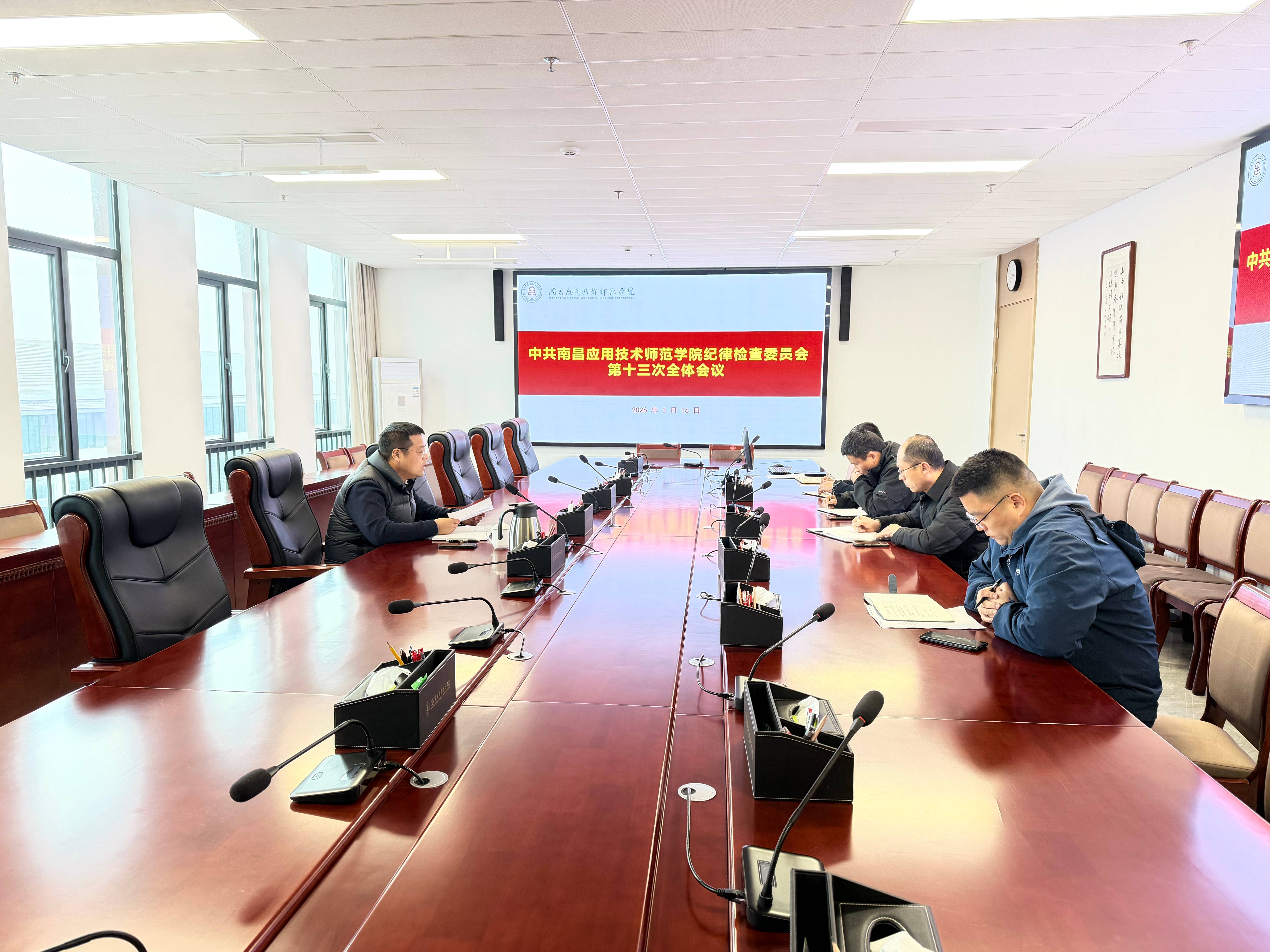 3月16日,校纪委召开了第十三次全体会议,传达学习习近平总书记近期重要指示批示精神和2026年教育系统全面从严治党工作视频会议、省纪委十五届六次全会以及全省教育系统全面从严治党工作会议精神,研究部署2026年上半年学校纪检监察重点任务。校党委副书记、纪委书记杨冬主持会议并讲话,全体校纪委委员参加。